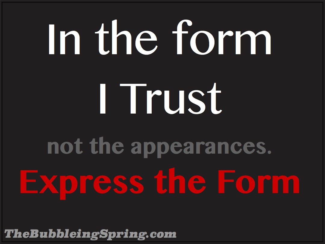 Master Moy often said, “Trust the Form.” Which form? There’s Tai Chi, Lok Hup, and Hsing-I in the Taoist Arts as well as weapon forms, sitting, standing and sleeping meditation. There are other forms in the Taoist Arts more subtle in nature. As I watch my kids learn Tae Kwon-Do, I question what is the form to trust there. There’s other martial arts and health benefiting activities. What about those forms?